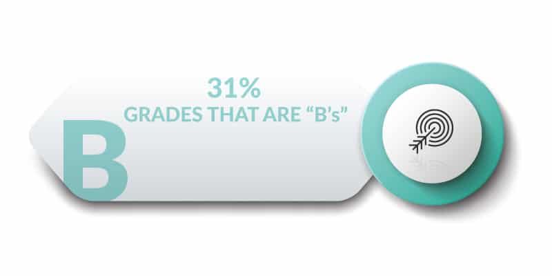 31% of all reported grades came in as “B’s.” For those that are adding, that means 79% of the reported grades came in as A’s and B’s.