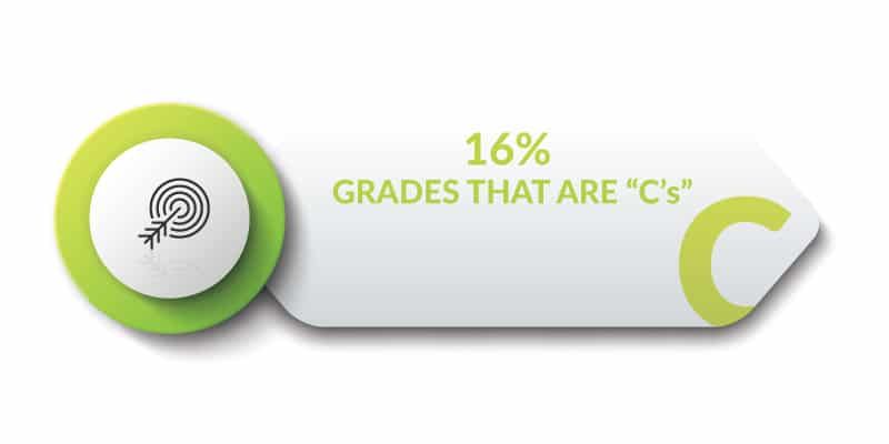 16% of all reported grades came in as “C’s.” When students enter our program, we tell them that there is really no reason why they should have a grade lower than a C.