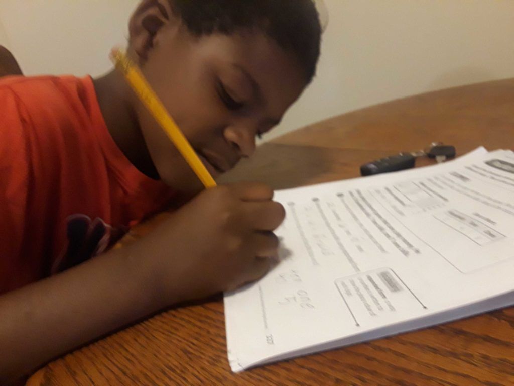 “I went to Kingston’s house on Thursday and saw Kingston and his cousins outside playing. This brought back for me kids just outside playing and not worrying about a virus we’re facing. They were playing with the dog and Kingston said, “Ms. Bland, I did not see you,” and introduced his cousins. Even though, the question will always be asked about homework; these children just enjoy someone coming to their house to visit. Kingston’s adult cousin asked, “You are here to see Kingston and the answer was yes.” And his reply was, “That’s great.” Kingston is completing his homework. Kingston prayed before I left, please listen. “